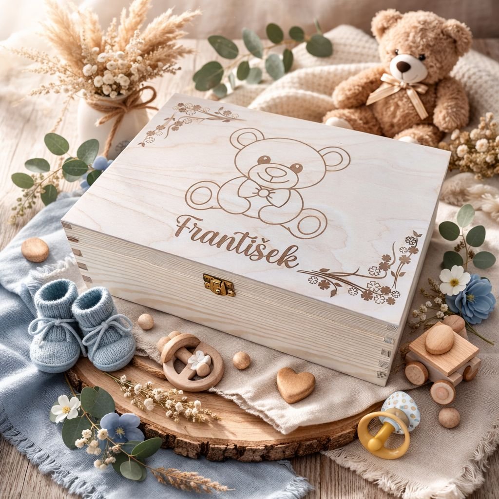 Príchod bábätka na svet je neopakovateľný zázrak. Čas však plynie rýchlo a spomienky v digitálnej forme často zapadnú prachom. Drevená truhlica na spomienky vám umožní fyzicky sa vrátiť k momentom, keď bol váš poklad ešte drobčekom.